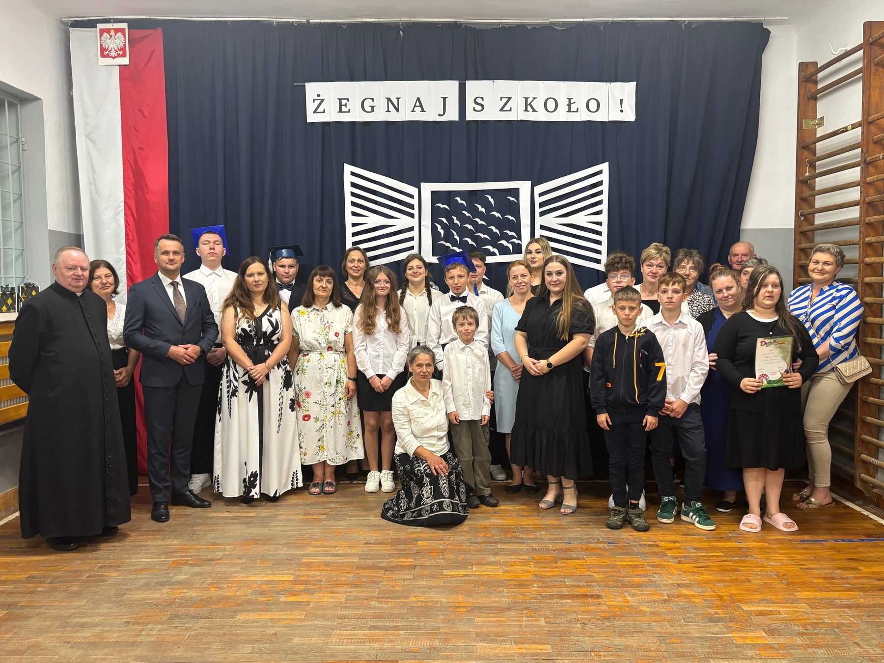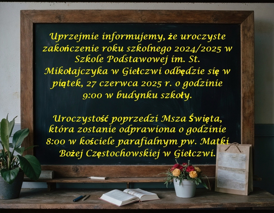 27 czerwca odbyło się uroczyste zakończenie roku szkolnego 2024/2025. Uroczystość ta tradycyjnie rozpoczęła się mszą świętą odprawioną przez księdza proboszcza Krzysztofa Stanickiego w miejscowym kościele. Następnie dalszy ciąg uroczystości odbywał się w szkole. Po odśpiewaniu hymnu państwowego głos zabrała pani dyrektor Agnieszka Bartnik-Zając, która wręczyła świadectwa z wyróżnieniem, nagrody książkowe oraz świadectwa ukończenia szkoły podstawowej. Rodzice najlepszych uczniów otrzymali listy gratulacyjne. W uroczystości wziął udział Zastępca Wójta Gminy w Wysokiem Pan Tomasz Bratos, który podziękował wszystkim nauczycielom i uczniom za pracę w naszej szkole. W dalszej części uroczystości uczniowie z klas: ósmej, siódmej i szóstej przedstawili inscenizację pożegnania ze szkołą.